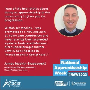 It’s #NationalApprenticeshipWeek2023 Massive congratulations to James our Home Manager for completing his apprenticeship with Acacia Training. 💭 Jodie McVay, Director at