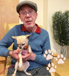 🐶 We’ve had a special visitor today, Pepper the Chihuahua. 🐾 Our residents enjoyed giving cuddles, and Pepper enjoyed receiving them.