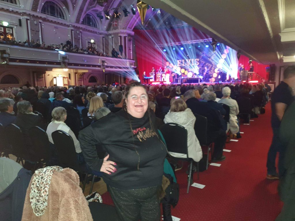 🎤 Resident Gill loves Elvis. We couldn’t get her the real Elvis, but we supported her to see her idol World Leading Elvis Tribute and Impersonator Gordon Hendricks is ELVIS at Kings Hall Stoke.
